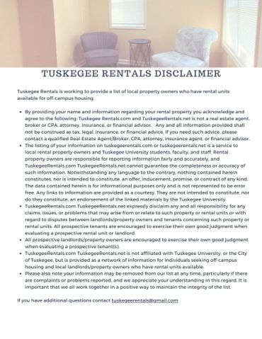 Tuskegee Rentals Disclaimer